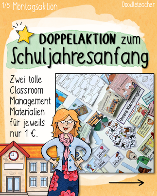 👑 Heute (am Montag, dem 04. September) und MORGEN bekommst du zwei coole Classroom Management Materialien in der Montagsaktion 🥳. Du findest das Aktionsmaterial unter der Material-ID in den Bildern oder aber oben in den Highlights meiner Doodleteacher Materialseite.